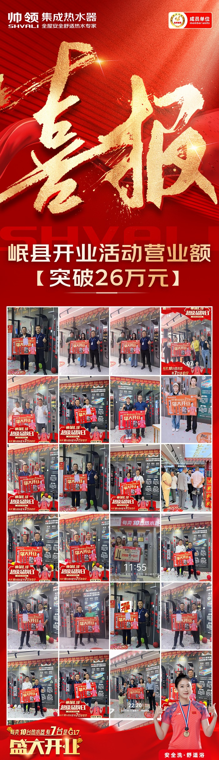 8月3日,帅领集成热水器线下门店加入了新伙伴,甘肃岷县专卖店宣布正式开业。活动当天,伴随帅领推出的一系列促销优惠,现场热情空前高涨。在帅领门店工作人员的耐心解说和专业讲解下,众多客户纷纷选购帅领集成热水器等厨电产品,推动门店销量火速攀升。开业期间,岷县专卖店凭借26万的销售成绩成功迎来店铺开门红!