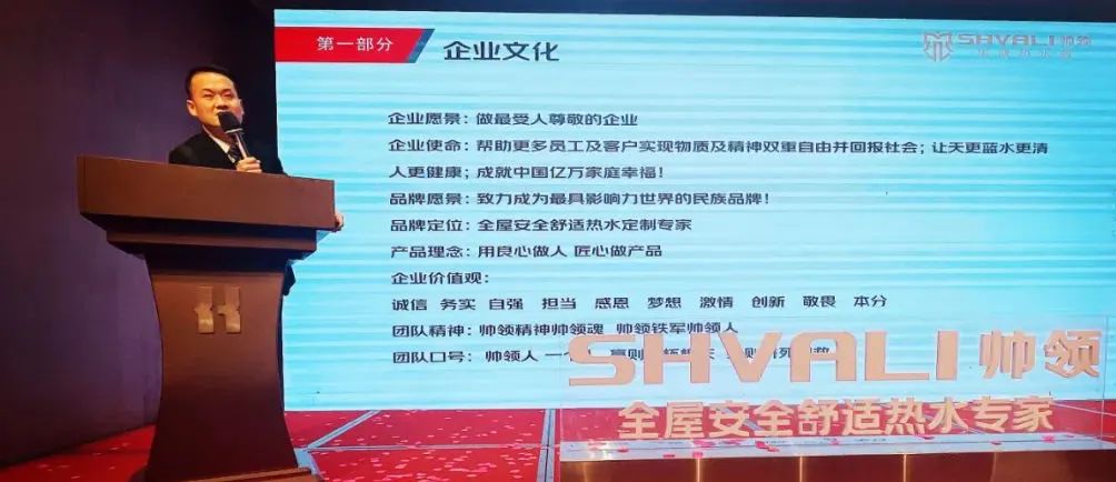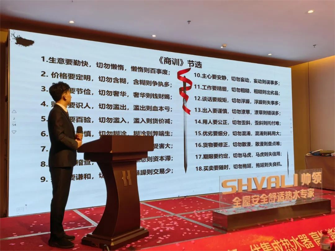 产品是市场的试金石,也是门店的制胜武器。随着全新一代高性能“臻美PLUS超薄G系列”集成热水器震撼上市,研发专家梁导师从产品的4大智造升级出发,形象生动地讲解了产品迭代升级的研发历程,并从一块钢板的切割打磨到从核心技术的潜心研究、从实验室的检测数据到打包抽检的标准化工序讲起,以一件件具体案例真实还原了帅领品牌独具的匠心研发。同时,梁导师还破例泄密了帅领全新一代核心14大升级技术,将学习氛围拉升到了极致。学员们表示,这是满满的干货,让人受益匪浅、信心倍增。