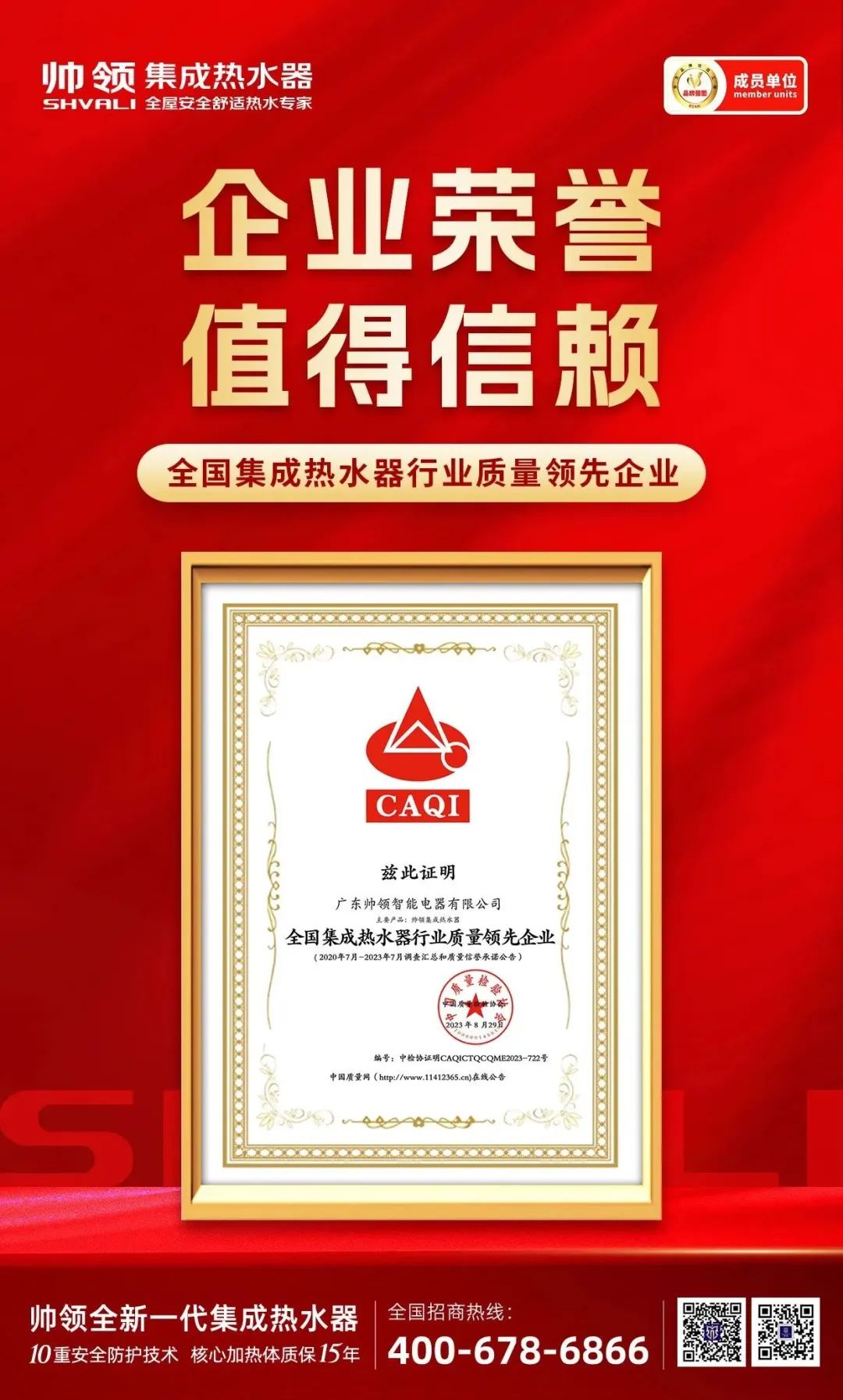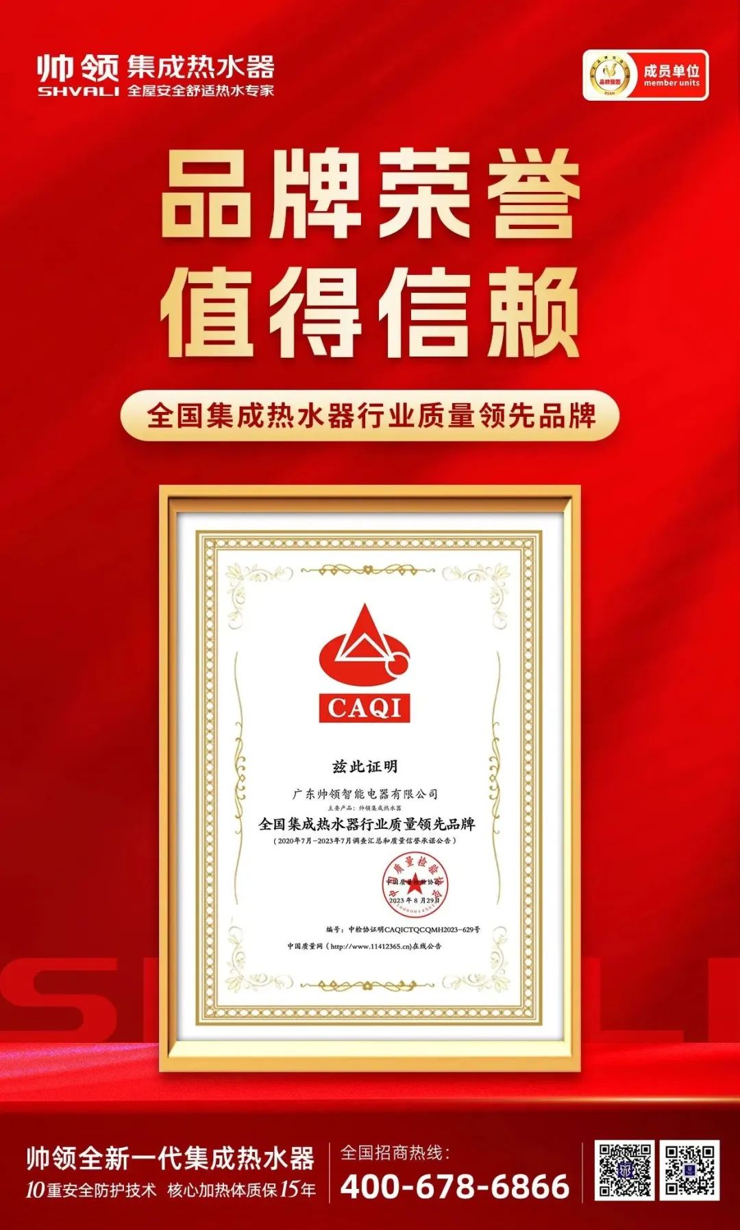 兰州首家帅领集成热水器