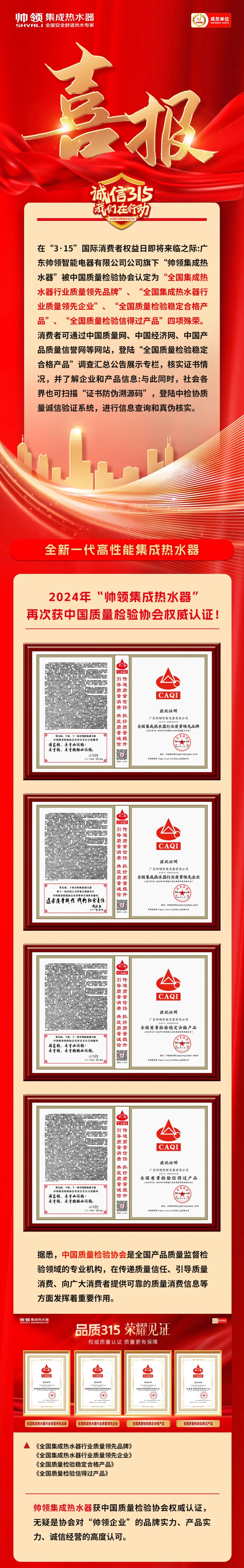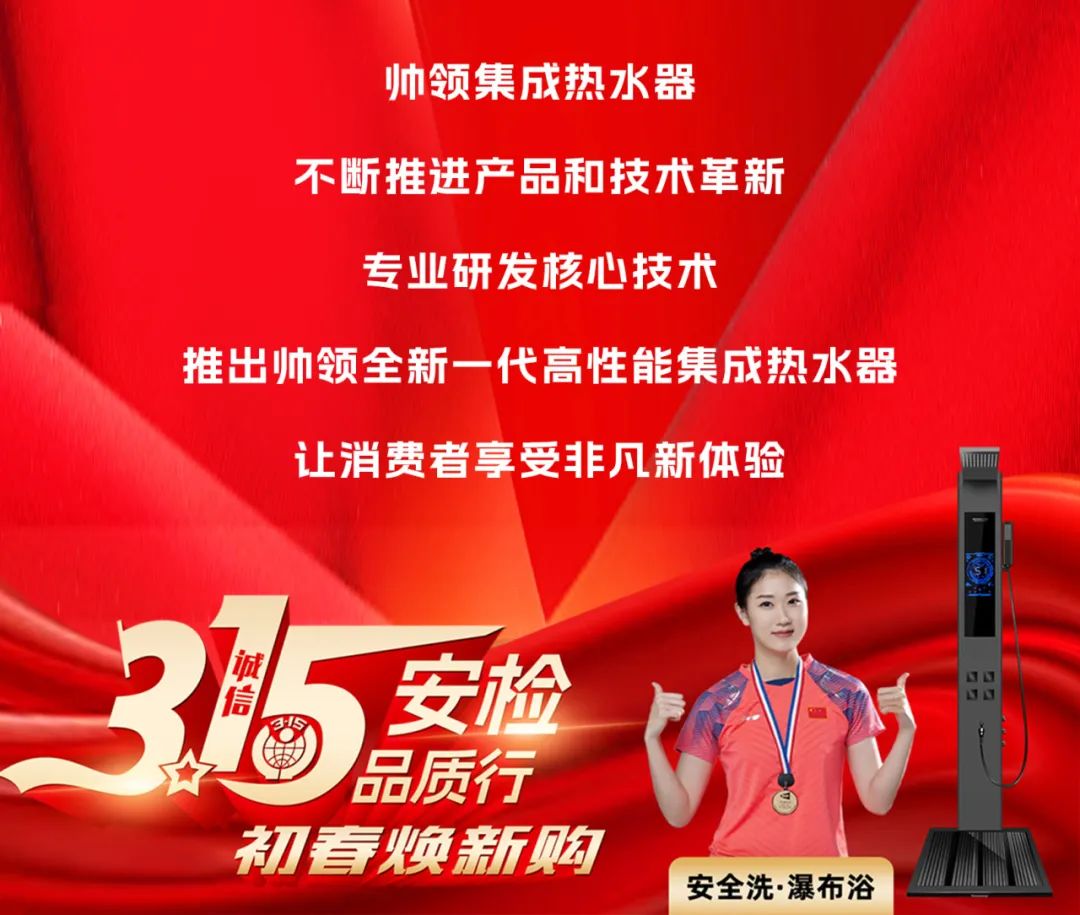 315国际消费者权益日 | 帅领集成热水器荣获质量检验信得过产品称号、实“质”名归帅!