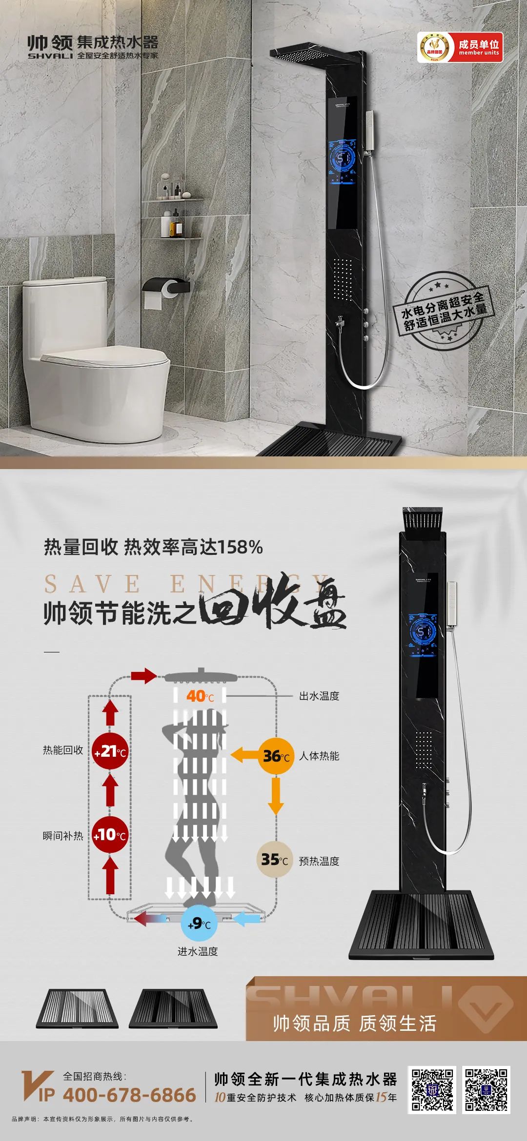 2021年,深耕行业十余载,帅领集成热水器,精研行业热水弊端,全面升级优化,横空出世,突破行业技术难关,以沐浴更安全,更舒适、更节能、更健康为导向,成功研发镍铬合金8核动态接力加热技术及能量回收盘热量回收技术,集热水器、多功能花洒、足底按摩器、热能回收系统和蓝牙交互、AI智能声控系统为一体的多功能热水器。一机供全屋,安全更节能。为每个家庭创造更加美好的热水生活环境。